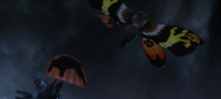 When the evil space monster King Ghidorah came to Earth and began abducting children in order to feed on their life forces, Rainbow Mothra arrived to challenge him. Completely outmatched by the King of Terror, he was soundly defeated. Moll gave her life to allow Rainbow Mothra to transform into Light Speed Mothra and travel back to the Cretaceous Period, when King Ghidorah first attacked Earth while he was smaller and weaker. Upon arrival, Mothra battled the younger Cretaceous King Ghidorah and defeated him by dropping him into the mouth of a volcano, though he was badly wounded in the fight. A group of Primitive Mothras appeared and used their silk to build a cocoon around Rainbow Mothra, which would preserve and heal him until the present day. While Mothra's actions caused King Ghidorah to temporarily vanish in the present, he soon reappeared, having regenerated from the tip of his tail which Mothra had severed in the past. Mothra burst from the cocoon in his most powerful form, Armor Mothra, and engaged King Ghidorah in a final battle. This time, he was the stronger combatant and successfully destroyed King Ghidorah once and for all. He then shed his armor and became Eternal Mothra, resurrected Moll, and returned to Infant Island with the Elias.