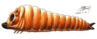 The twin Mothra larvae from Godzilla: Tokyo SOS are actually non-identical, and display some minor sexual dimorphism upon closer examination. The male larva possesses longer tusks and tail spikes, along with more spots on his face compared to the female. The larvae's eyes are initially blue, but turn red temporarily after their mother is killed by Godzilla.