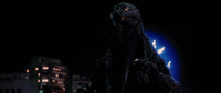 Godzilla blasts a Mothra larva with his atomic breath