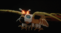 The "action" Mothra prop is readied for filming of a battle scene with Desghidorah.