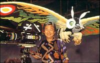 The Mothra Leo imago prop was reused for Rebirth of Mothra 2. It was slightly modified and repainted in order to portray Leo's new form of Rainbow Mothra. In addition, two new props were created for Leo's Aqua Mothra form. The design of Aqua Mothra was based on an unused design considered for a "high-speed flight form" for Mothra Leo in the previous film.[10] Toho Eizo Bijutsu was again responsible for modeling Aqua Mothra. Its body was constructed from latex while its fins were made of vinyl chloride so that they appeared transparent.[10] Aqua Mothra's "Illusion Mirage Aqua" ability he uses to defeat Dagahra was not in the film's screenplay, but was conceived during production by Koichi Kawakita in order to differentiate the battle from that in the previous film.[10] This was also Kawakita's way of finally realizing a battle within a monster's body, an unfulfilled idea he had for the scrapped Heisei Godzilla films Micro Super Battle: Godzilla vs. Gigamoth, Godzilla's Counterattack, Godzilla vs. Mechani-Kong, Micro-Universe in Godzilla, and a very early story for Godzilla vs. Mechagodzilla II. Tomoki Kobayashi returned as chief modeler on the film, while Naoki Nieda, Keyoji Nagata, Tsutomu Watanabe, and Maki Kobayashi were all credited for "Mothra Modeling", though it was not specified for which forms they were responsible.