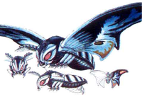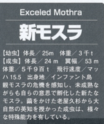 - ↑ "Mothra Leo" (モスラレオ Mosura Reo) is sometimes officially used for the character in Japanese, though "New Mothra" remains the most commonly used name.