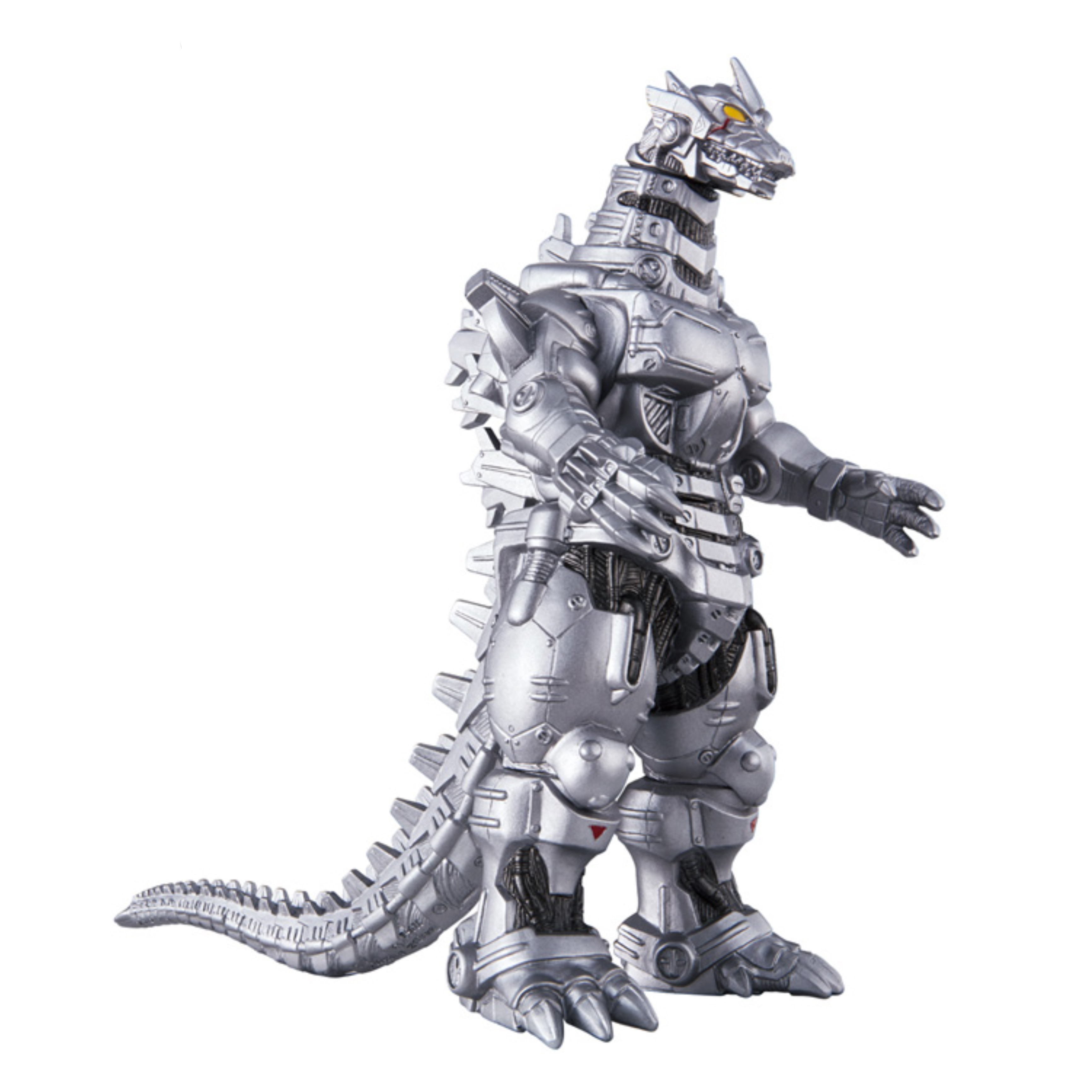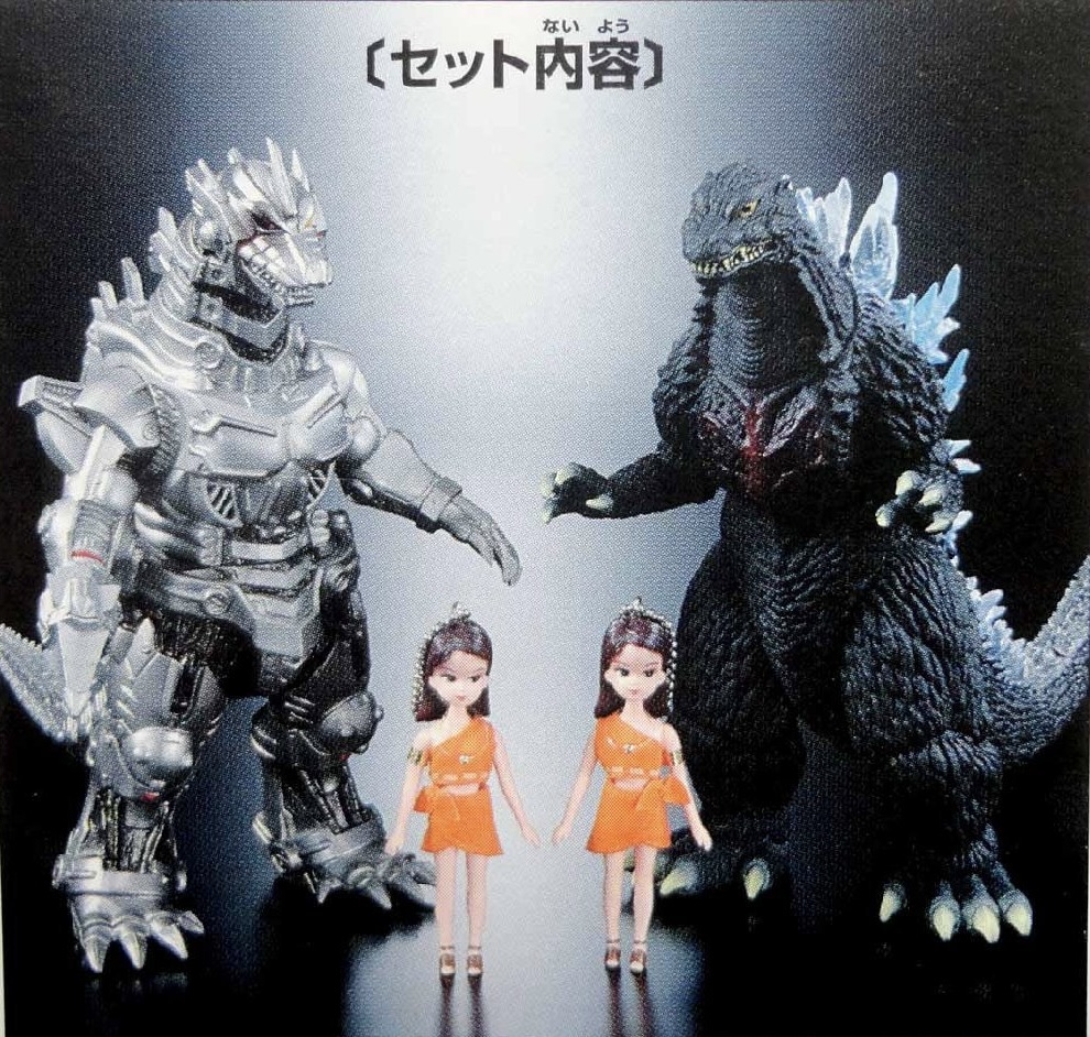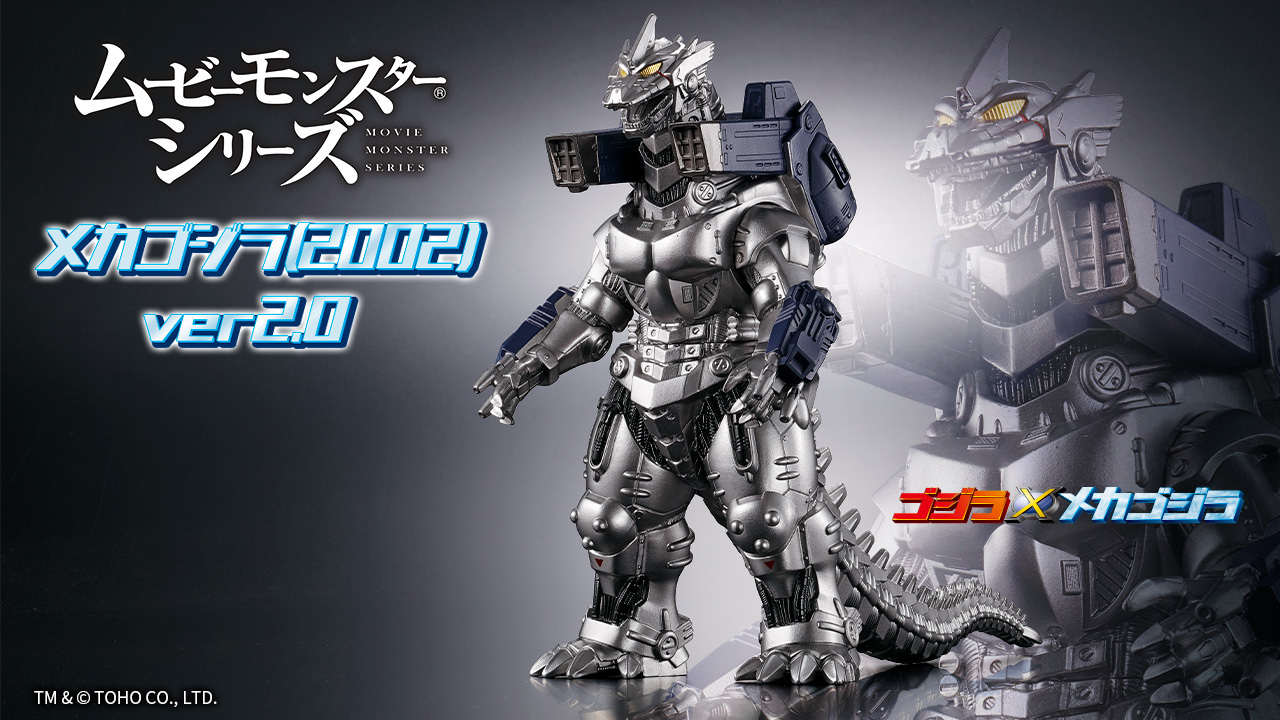 To coincide with the release of Godzilla Against Mechagodzilla in 2002, Bandai added Godzilla 2003 and Mechagodzilla 2003, the latter both with and without weapons, to the Movie Monster Series line-up, and like the GMK figures, they were all part of the 8-inch scale. Theater Exclusives for both the Godzilla 2003 and Mechagodzilla 2003 with weapons figures were also produced, as well as a red Ito-Yokado exclusive Godzilla and a Link Science exclusive Mechagodzilla.