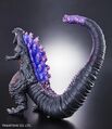In 2017, Bandai released two reissues of their Godzilla 2016 figure. The first, called Godzilla 2016 Frozen Version, depicts Godzilla frozen from the ending of the film, complete with the monster's fifth form present on the tip of the figure's tail. The second repaint, called Godzilla 2016 Climax Version, is made to resemble Godzilla as he fires his atomic breath in the film, with an unhinged jaw and purple paint on his dorsal fins, the tip of his tail, and the inside of his mouth. Bandai also released repaints of their figures of Godzilla's second and third forms, now with more film-accurate paint jobs.[2]