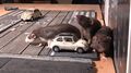 Nezura on a burning car