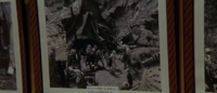Photographs from the aftermath of Godzilla's rampage on Odo Island were placed on display at a residence on Magonoté Island.