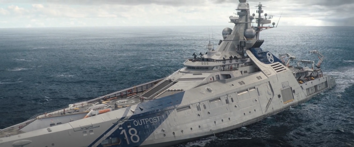 During the joint Monarch-Apex Cybernetics operation to rescue Cate Randa, May Olowe-Hewitt, and Lee Shaw from Axis Mundi, Outpost 18 was stationed outside of Skull Island as Monarch monitored the progress of the mission. Following the release of Titan X from Axis Mundi, Outpost 18 pursued the creature and sought to prevent it from wreaking havoc upon the ocean.