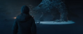 2015: After the others start a fire and set May within a tent, she recalls the same moment with Kentaro deliriously, then complains that her legs are hurting. Cate sees this as a good sign, meaning that she doesn't have frostbite yet. May asked Cate to call her sister Lyra if she dies here, and attempts to give Cate Lyra's number until Lee returns with research papers from Hiroshi. Lee asks whether Cate wants to burn the papers to stoke the fire or keep them to learn as much as they can about her father, but after looking at May shivering, Cate tells him to burn them. Lee obliges, only for the Frost Vark to appear, consume the fire while generating a blue glow, and leave again. At Monarch's headquarters, Verdugo shows a collection of experts Barnes's readings. As they debate this revelation, with one disapprovingly mentioning Monarch's new Titan warning system, Tim suggests that Bill Randa's files hold the answer to their questions, as there has to be a reason Lee is going after them. In Alaska, Lee realizes that the Frost Vark feeds on heat and will be attracted to something warmer than them. Using this information, he plans on creating a bonfire with aviation fuel and Du-Ho's corpse to distract it while they escape. Cate attempts to comfort May, but May tells Cate that she should be prepared to leave her and even Lee behind to survive. Kentaro hallucinates a visage of Hiroshi calling to him and walking past him. After the hallucination dissipates, he notices pencils shavings on the ground, similar to the ones his father created when working, leaving a trail he follows until he stumbles upon the spherical building. As he walks inside, he hallucinates being back at his art debut with his father, the center sculpture displaying Hiroshi's face. Kentaro tells that while he sold some of his pieces, Kimi dropped him anyway. Kentaro confronts Hiroshi about how he felt forced into the job by his father's encouragement, and that this show was the last time he saw him. The hallucination tells Kentaro that he's proud of him as Kentaro comes back to reality. Kentaro finds that the building's radio was still powered and that more of the pencil shavings are resting beside it.