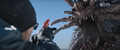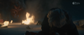 As Lee pours the aviation fuel over Du-Ho's corpse, he reassures Cate that Du-Ho always wanted to go out in a blaze of glory and begins recounting the story of how the pair first met - a drinking competition in which Du-Ho cheated. Cate hears a helicopter nearby seconds before the Frost Vark bursts out of the ground right in front of Lee. The Titan chases May and Cate as Lee desperately attempts to light the fire. The women attempt to get the helicopter's attention until May trips, holding out her laptop so the beast can freeze it first. Lee finally lights the fire, distracting the Frost Vark and throwing him backwards. Cate helps May to her feet as the helicopter takes notice of them. It lands, revealing Kentaro already inside, and the three quickly join him as the Frost Vark finishes its meal and burrows towards them. The helicopter takes off and narrowly escapes the lunging Titan, but Lee notices a glowing hole in the Earth as the helicopter flies off. As they ride out, Cate thanks Kentaro, who reveals Hiroshi had been to the same building and fixed the radio, and so must still be alive. May thanks both of them and holds Cate's hand, to Kentaro's silent chagrin. Lee checks May's bag, but finds the Frost Vark destroyed the laptop. As the helicopter lands, the group is met by Tim, Duvall, and a group of armed Monarch guards.