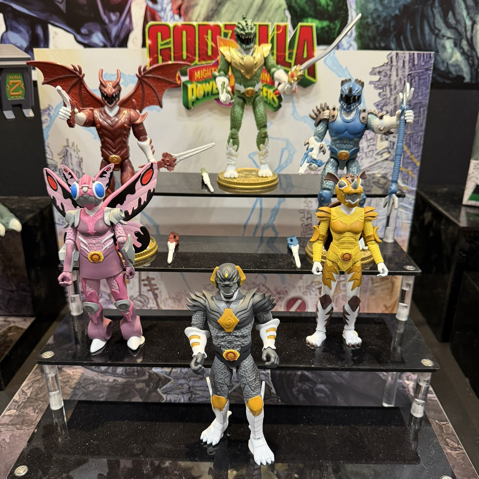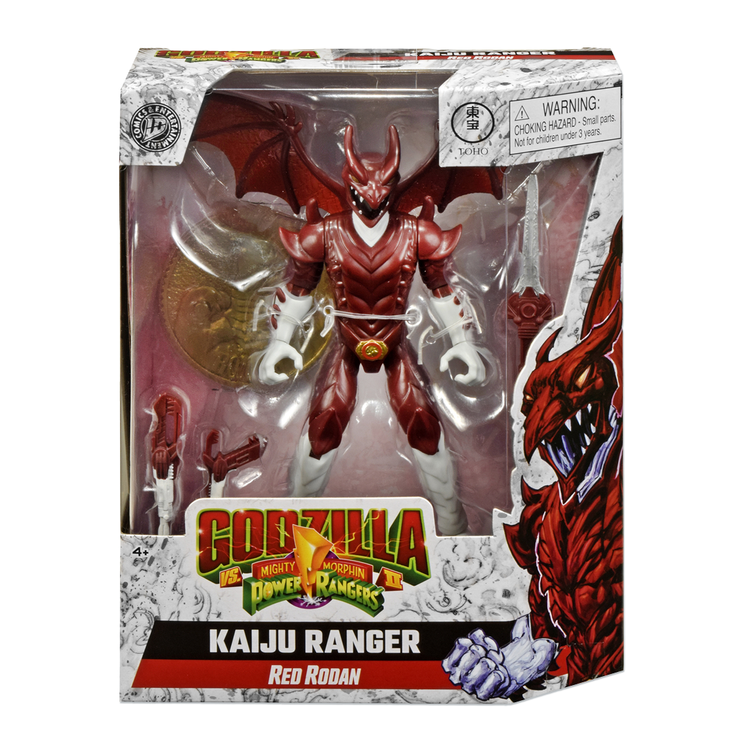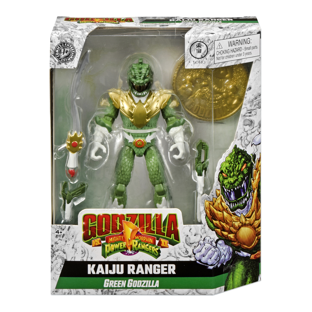 On February 14, 2026, Playmates formally announced a line of figures based on the IDW Publishing and BOOM! Studios crossover comic series Godzilla vs. The Mighty Morphin Power Rangers II ahead of the 2026 Toy Fair. The line merges characters from the Godzilla and Power Rangers franchises. The first wave, set for release on March 1, 2026, features three Kaiju Power Rangers; the Green Godzilla Ranger, Blue Anguirus Ranger, and Red Rodan Ranger. The second wave, revealed during Toy Fair, will feature the Pink Mothra Ranger, the Black King Caesar Ranger, and the Yellow Baragon Ranger, and is set for release later in 2026. Additionally, a large figure of Godzilla wearing the Dragonzord armor was unveiled at Toy Fair.