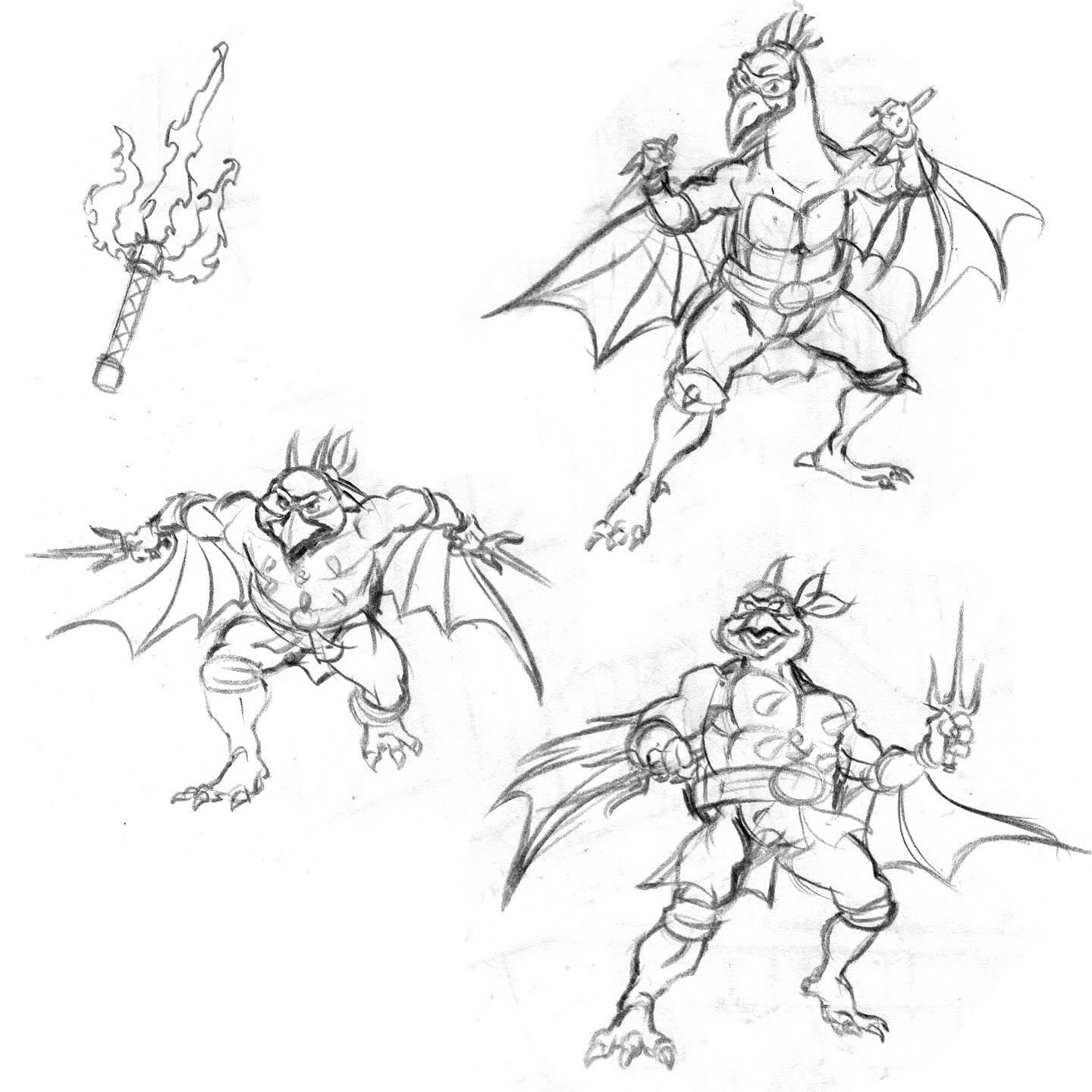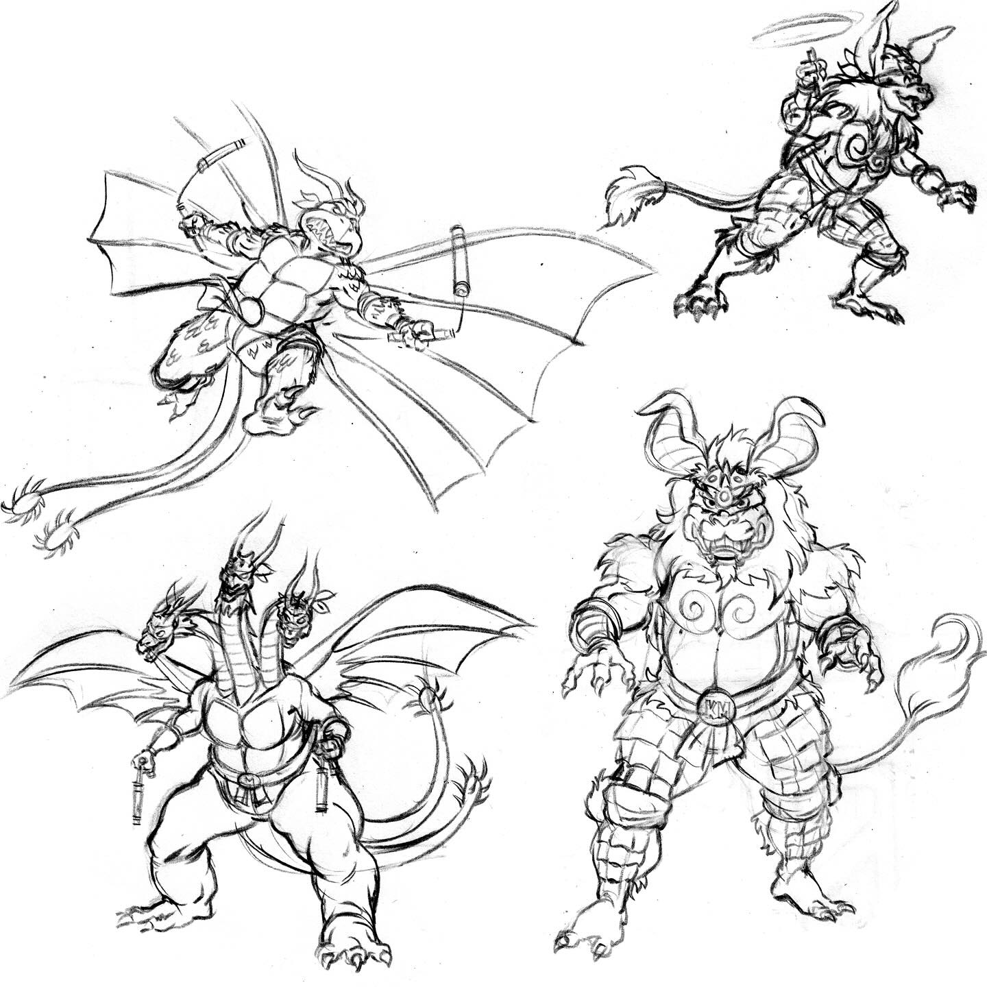 Early Mikey x King Ghidorah concept art by Dan Schoening (featuring Mikey x King Caesar pitch)