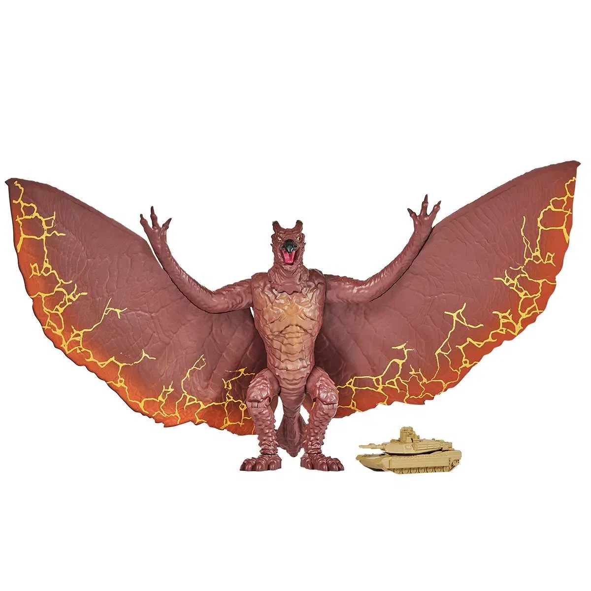 Playmates unveiled figures of a 12-inch Godzilla (2004) and Kong from Kong: Skull Island, along with Godzilla (2016), SpaceGodzilla, and Destoroyah in the 6.5-inch scale, at Brand Licensing Europe 2019. Beginning in December 2019, the company released a Walmart-exclusive line of figures of monsters from both the Godzilla and King Kong series in anticipation of the release of Godzilla vs. Kong. The previously-revealed figures were joined by a 6.5-inch Kong, Gigan (2004), and Godzilla (2004). Reissues of five Bandai America vinyl figures in Playmates packaging also began to appear in 2020: Godzilla (1954), King Ghidorah (2001), Mechagodzilla (1974), Godzilla (1999), and Godzilla (1968). In an interview with Toho Kingdom, Vice President of Marketing John Stelzner revealed that the company would be releasing soft vinyl 6.5-inch figures of Burning Godzilla and Jet Jaguar in spring 2021, followed by "a few new monsters" and another 12-inch Godzilla figure in the fall.[2] The line became available to other retailers, such as Target, in April.[2] In August 2021, Rodan (1956) and Gorosaurus (1968) figures were unveiled on Target's website.[3][4]