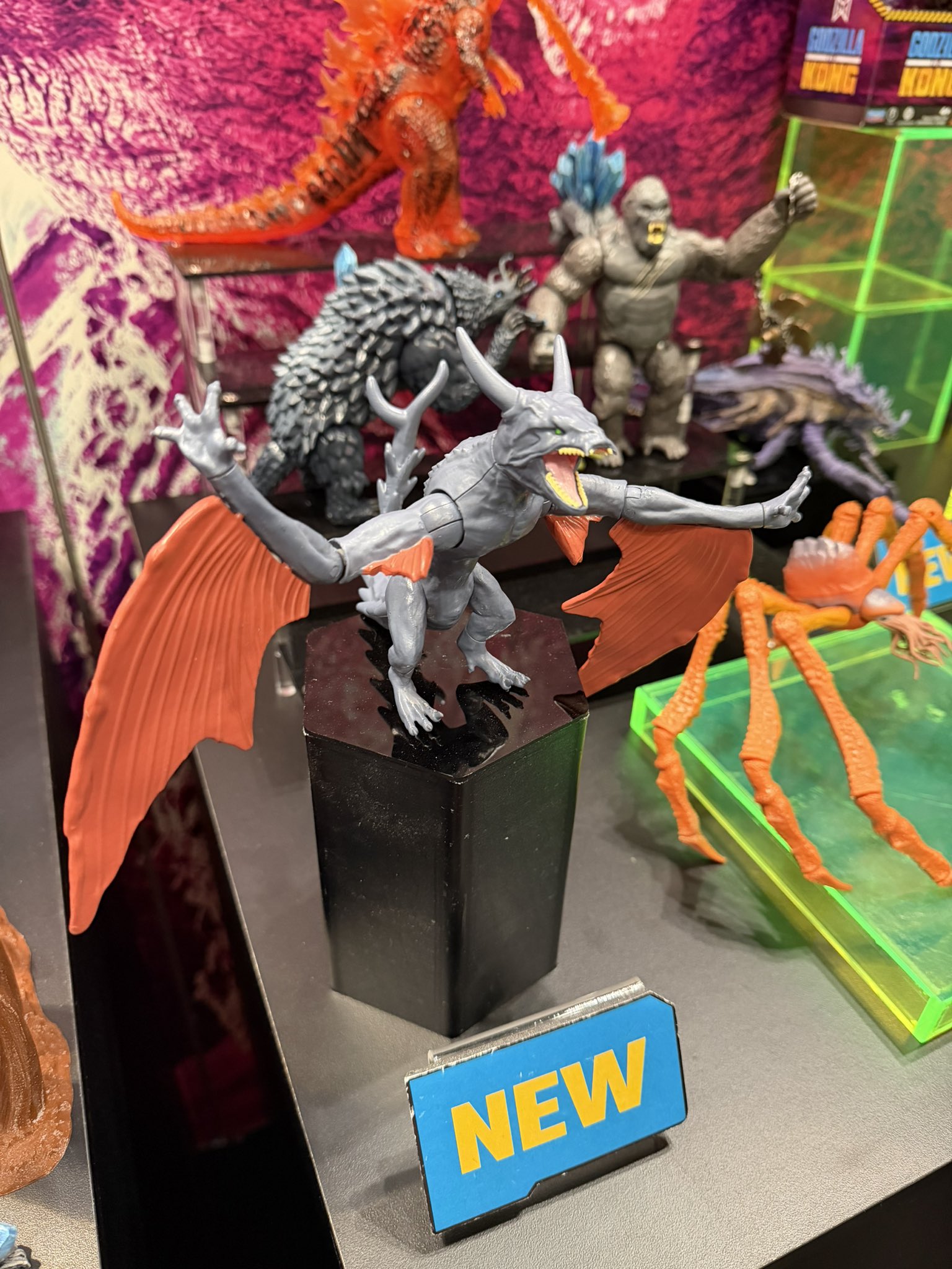 On May 15, a Kong with Battle Axe figure was revealed on the Smyth's Toys website. On May 21, a Tiamat figure with submarine accessory was also revealed, followed by a Mothra with a mini Jia one day later. On July 21, a figure based on Godzilla's energized form was found at a Walmart. Figures of One-Eye and the Drownviper were first posted online on November 20. The back of the Drownviper box included images of a "Real Feel" Kong and Godzilla, which were found in stores in January 2025.