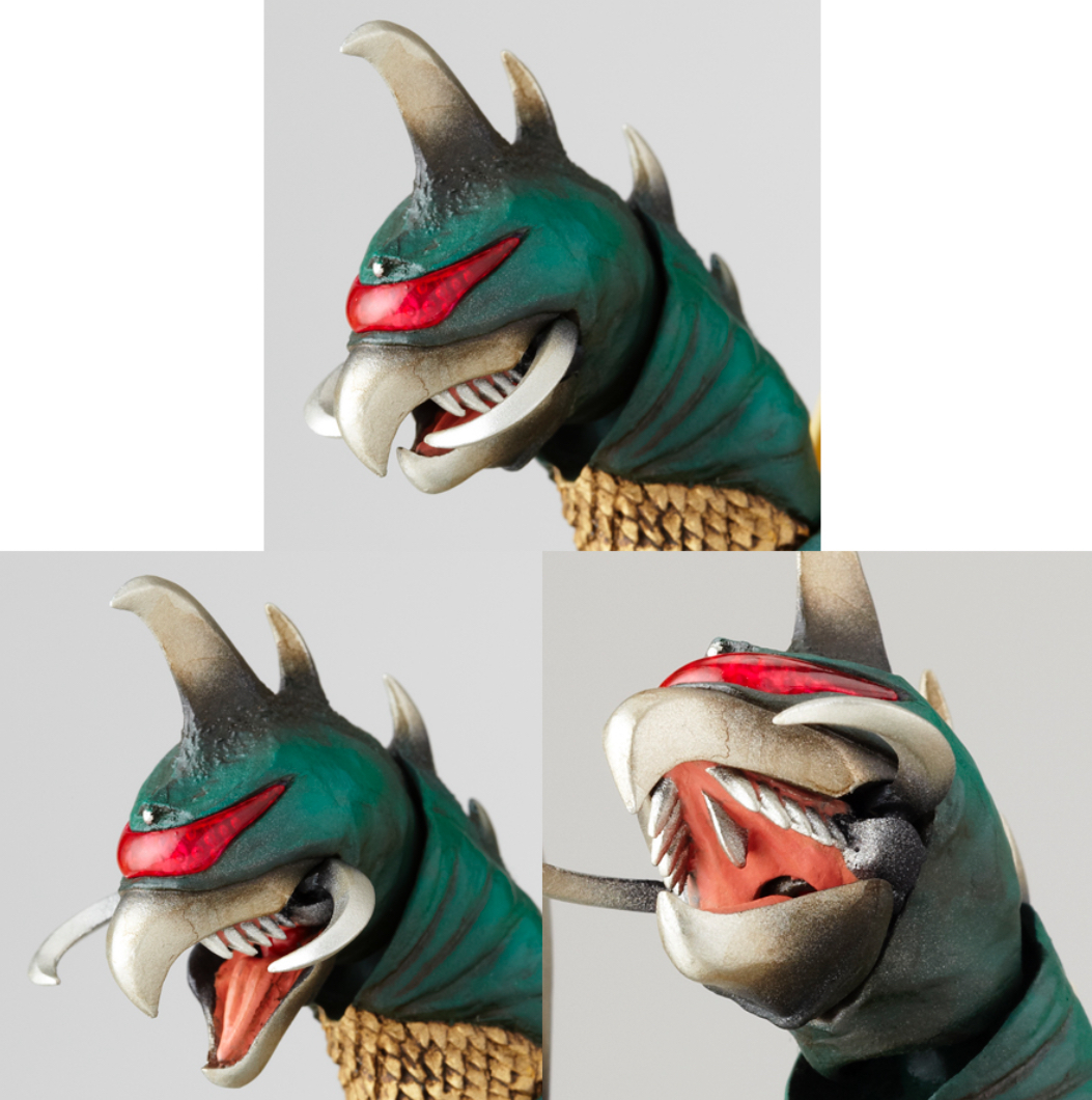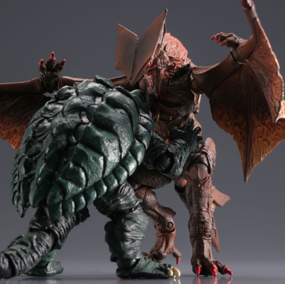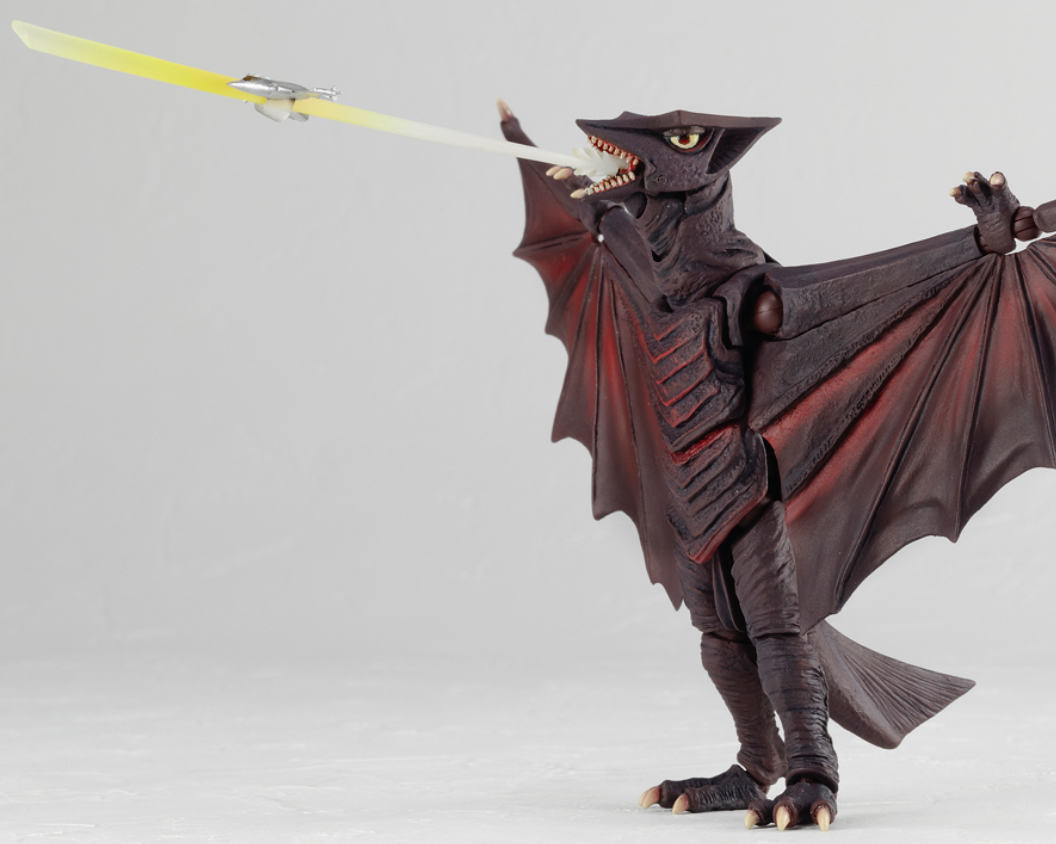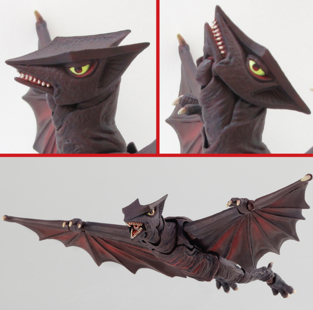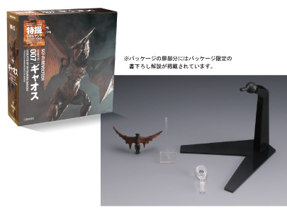 The Gyaos figure is based on the creature's appearance from Gamera the Guardian of the Universe, and comes with a flight stand and a miniature Gyaos.