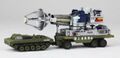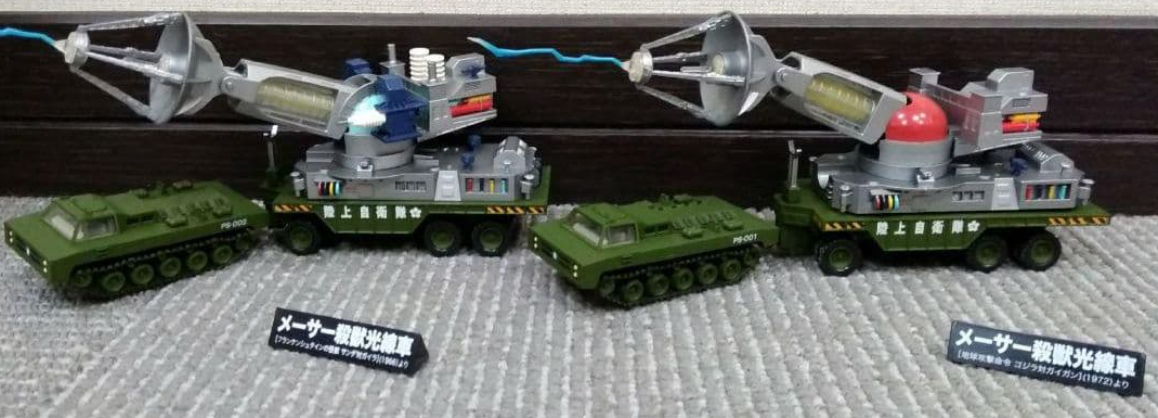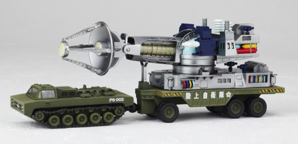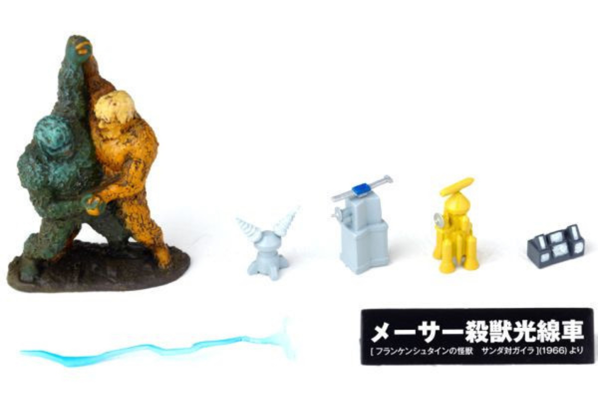 The Type 66 Maser Cannon figure is based on the weapon's appearance in The War of the Gargantuas (1966), and comes with a battling Sanda and Gaira figurine, a computer console, and a laser beam.