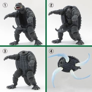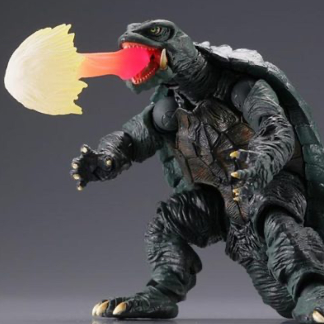 The Gamera 1967 figure comes with a flame breath effect and parts for Gamera's flying mode. It was released in 2011.