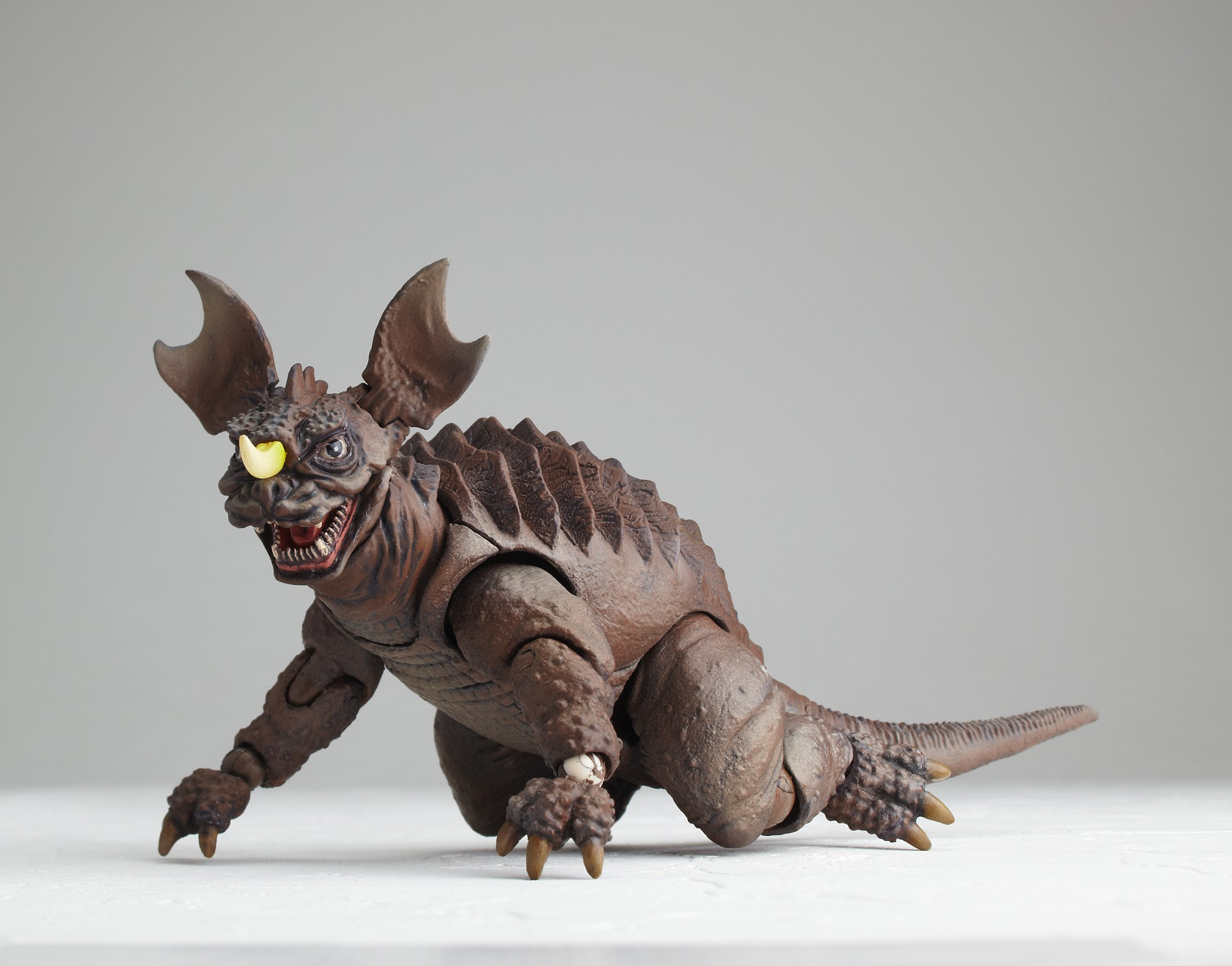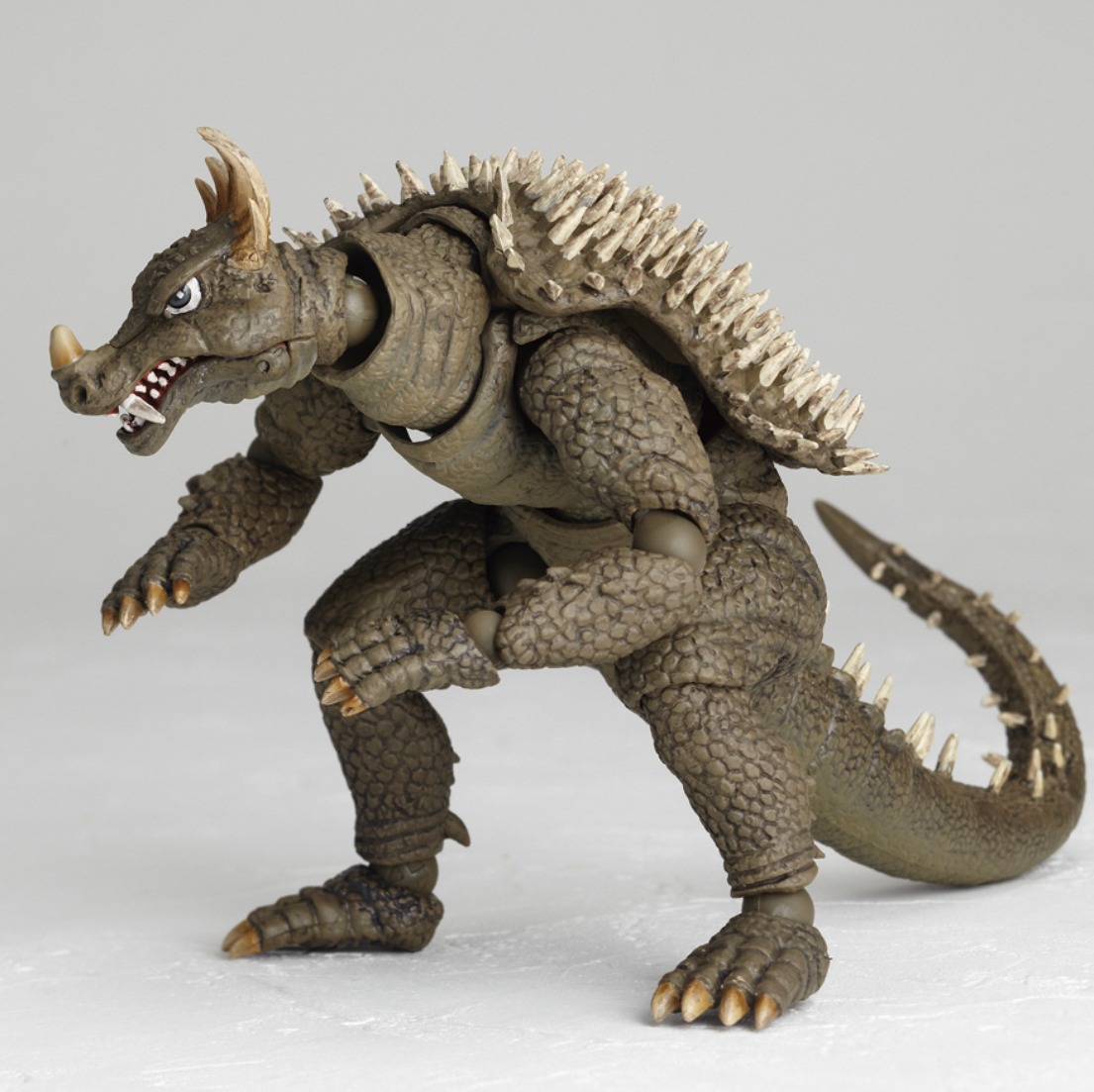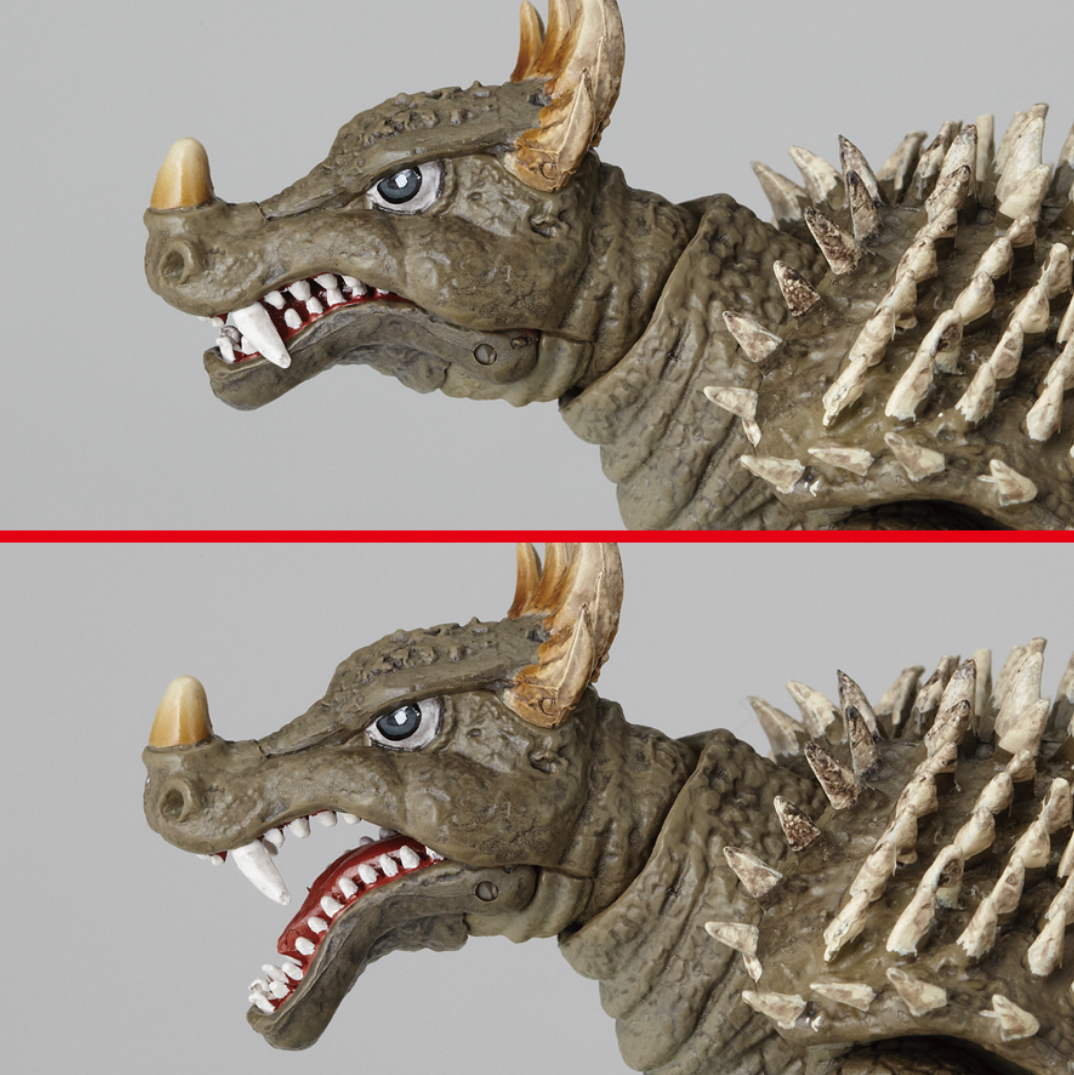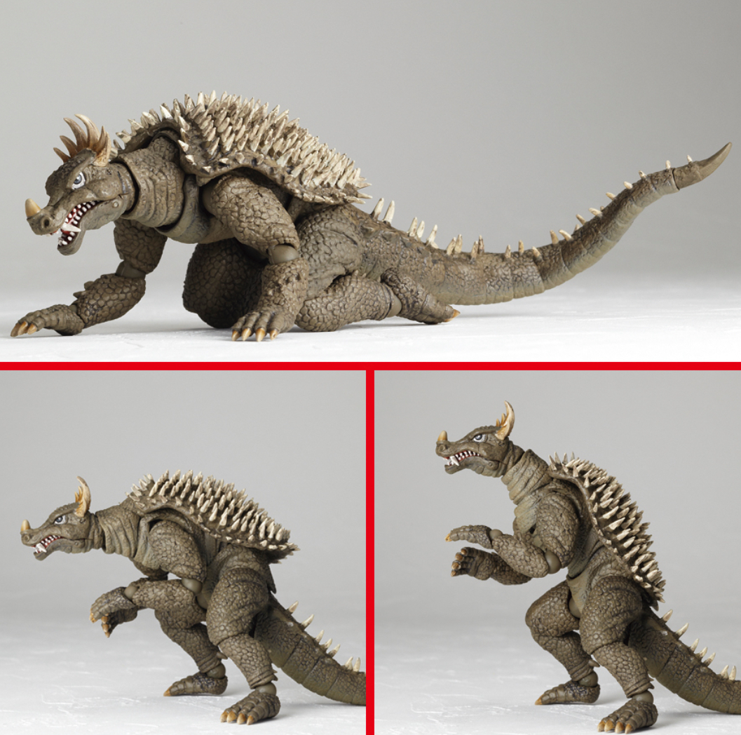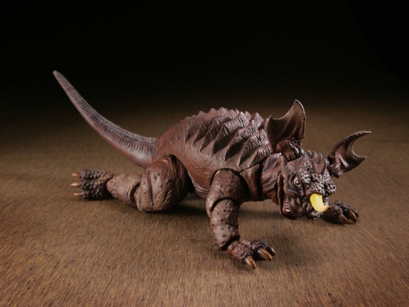The Anguirus figure is based on the monster's appearance in Destroy All Monsters (1968), and comes with a miniature Moonlight SY-3.