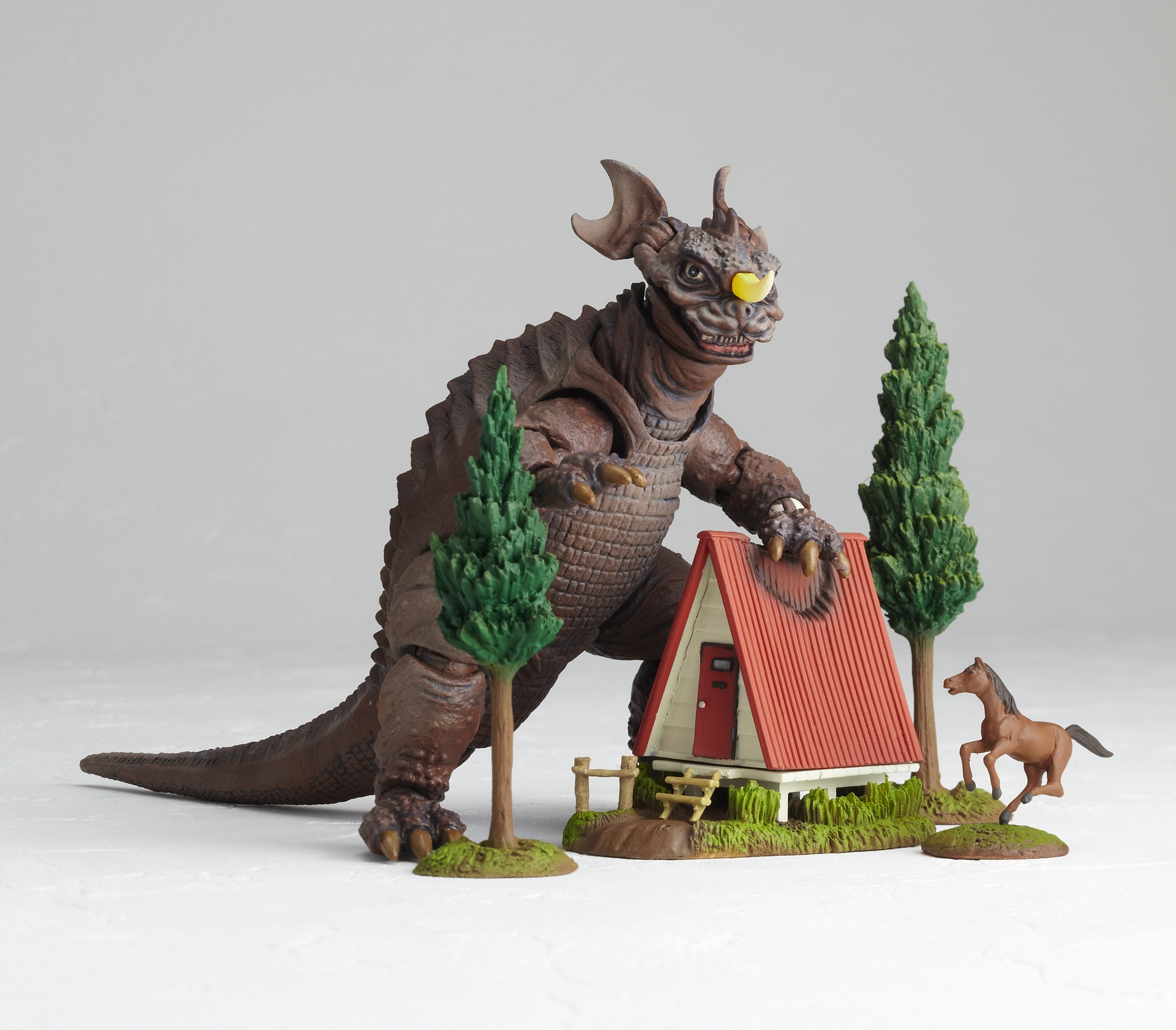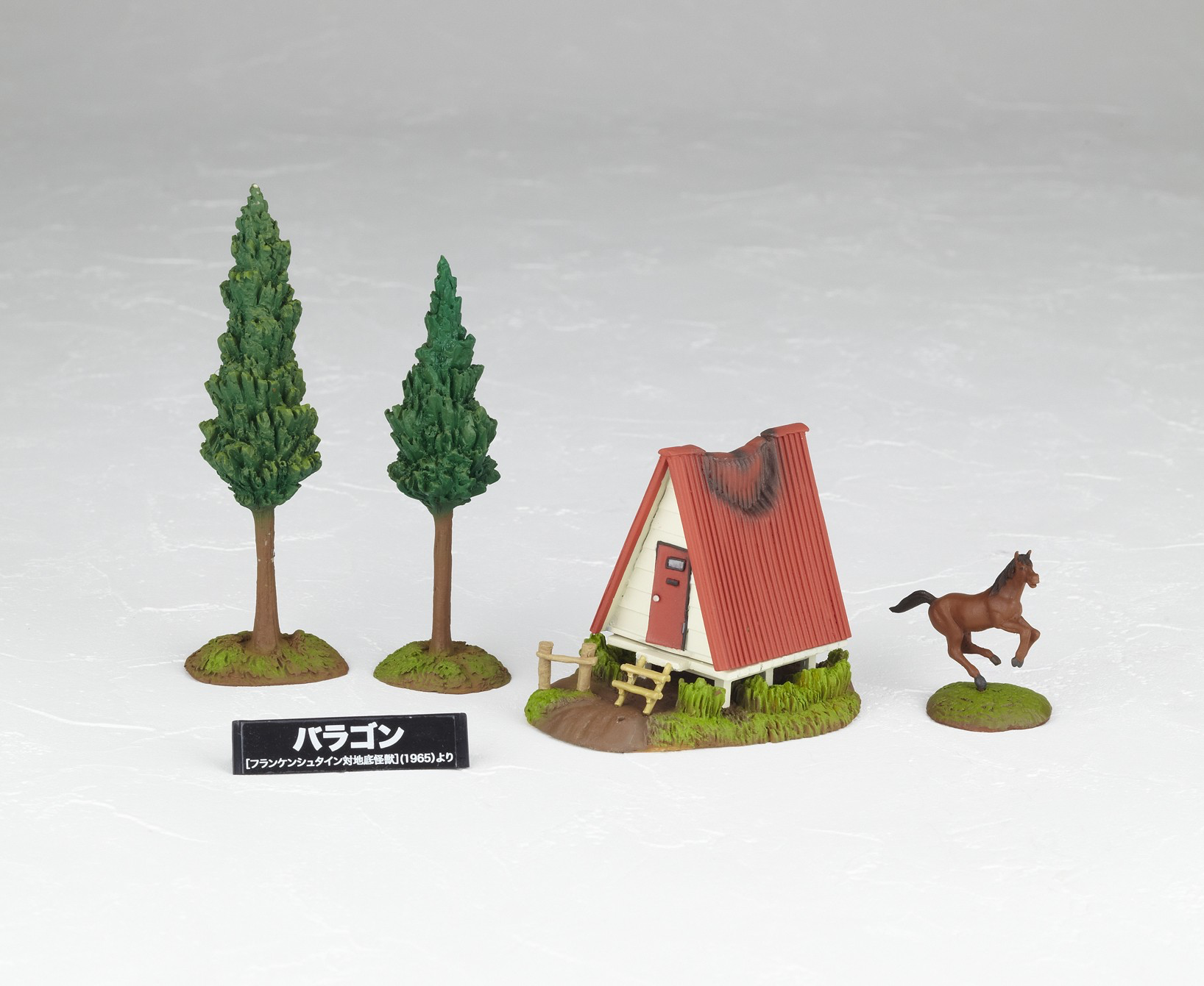 The Baragon figure is based on the monster's appearance in Frankenstein vs. Baragon (1965), and comes with a farm house, a horse, and two trees. It was released in 2010.