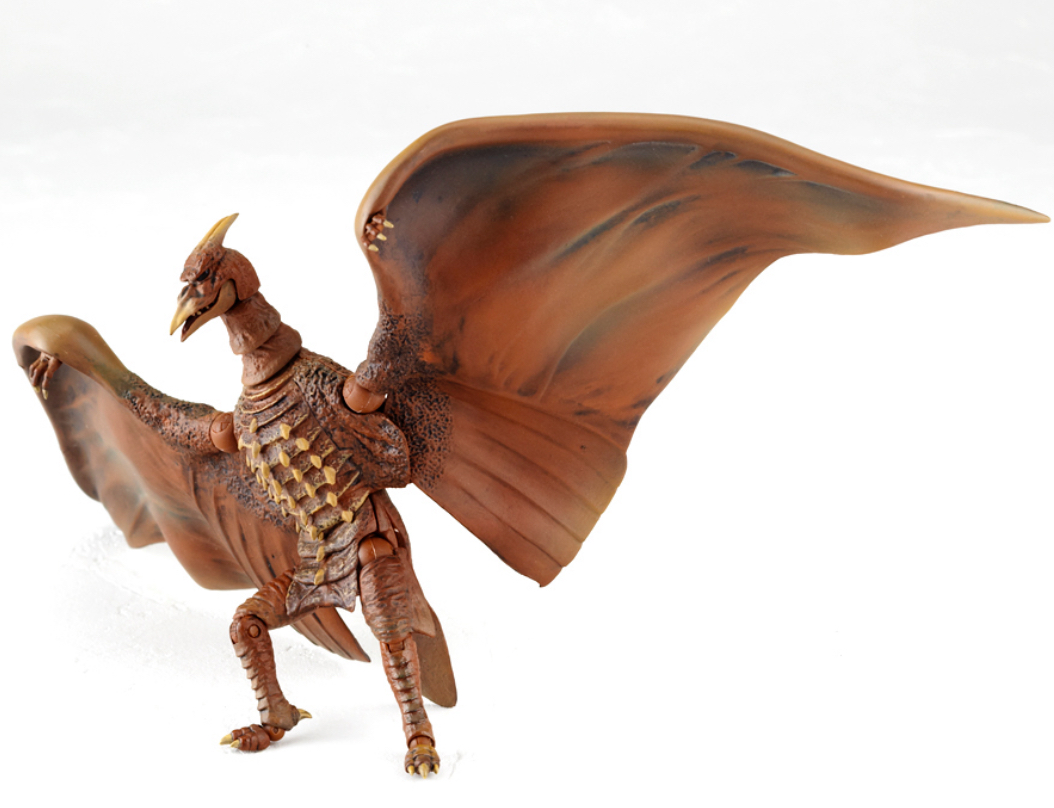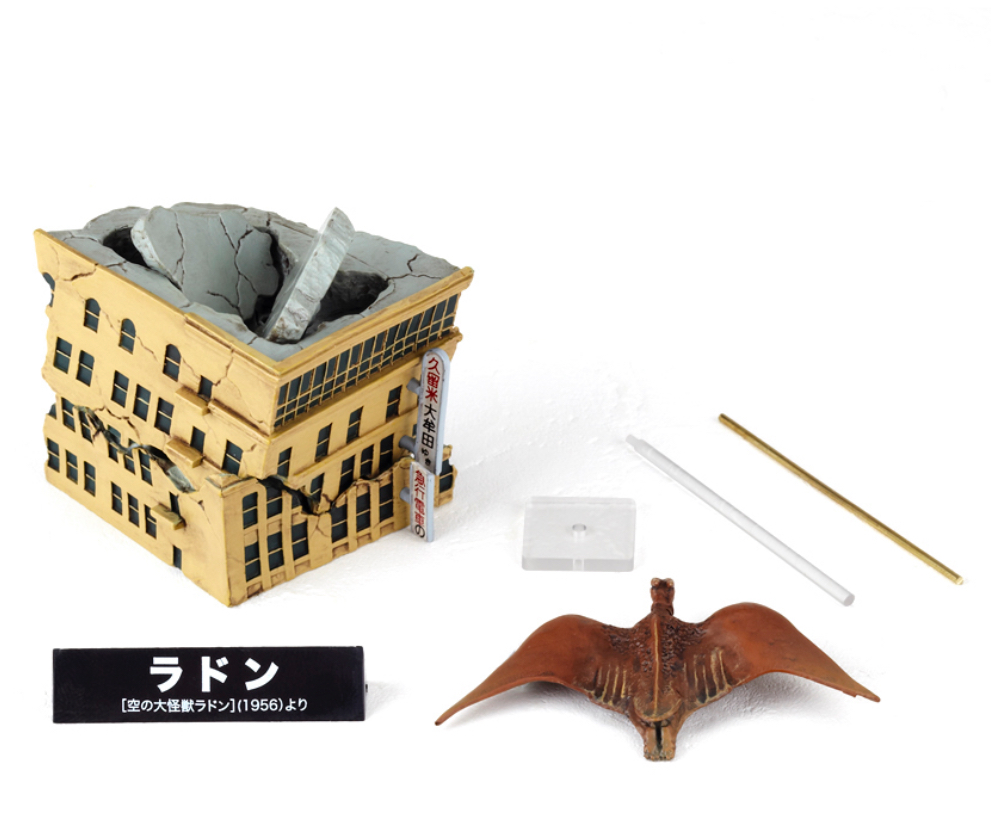 The Rodan figure is based on the monster's appearance in his 1956 debut film, and comes with a miniature flying Rodan and a building that can be destroyed.