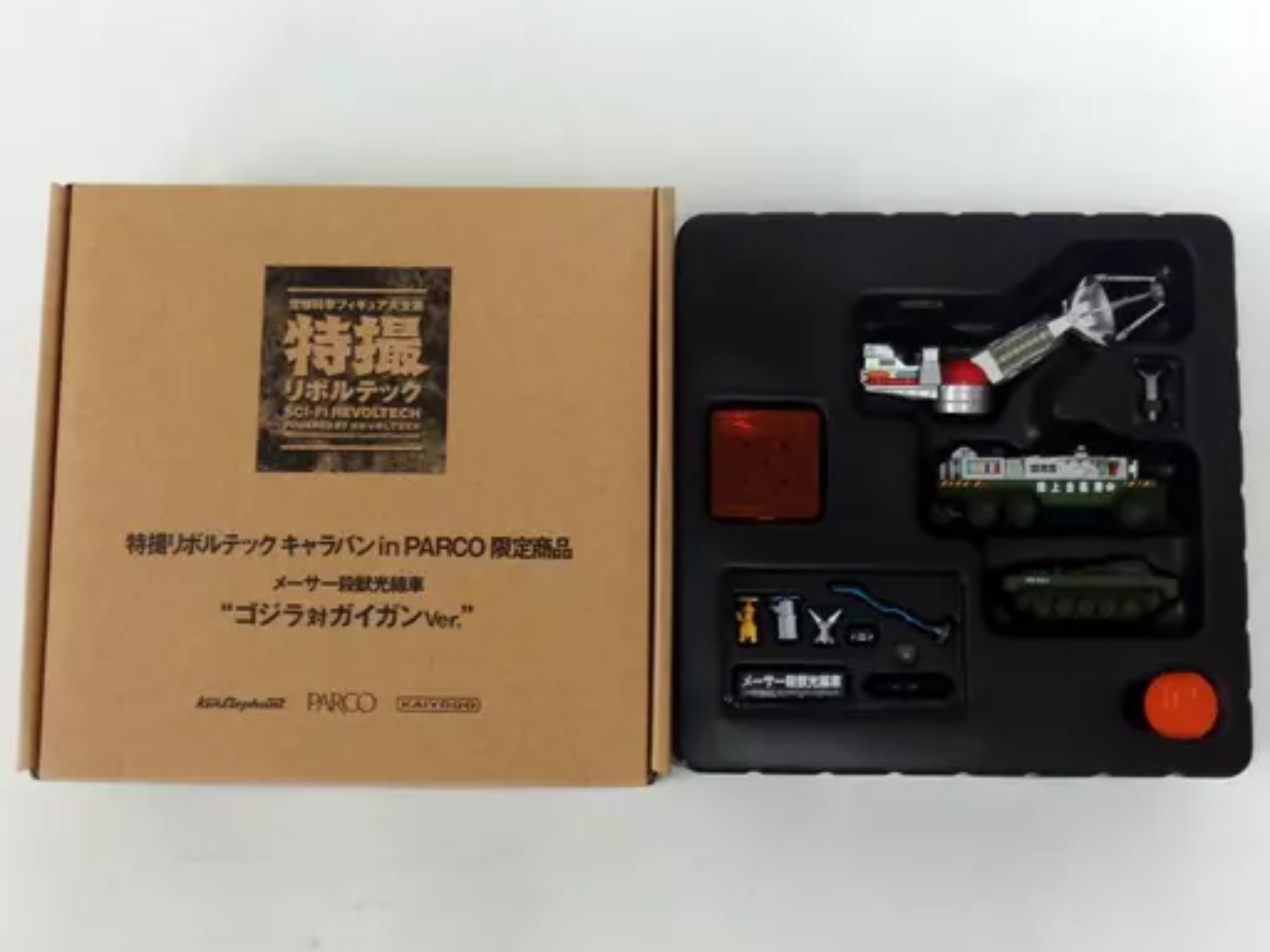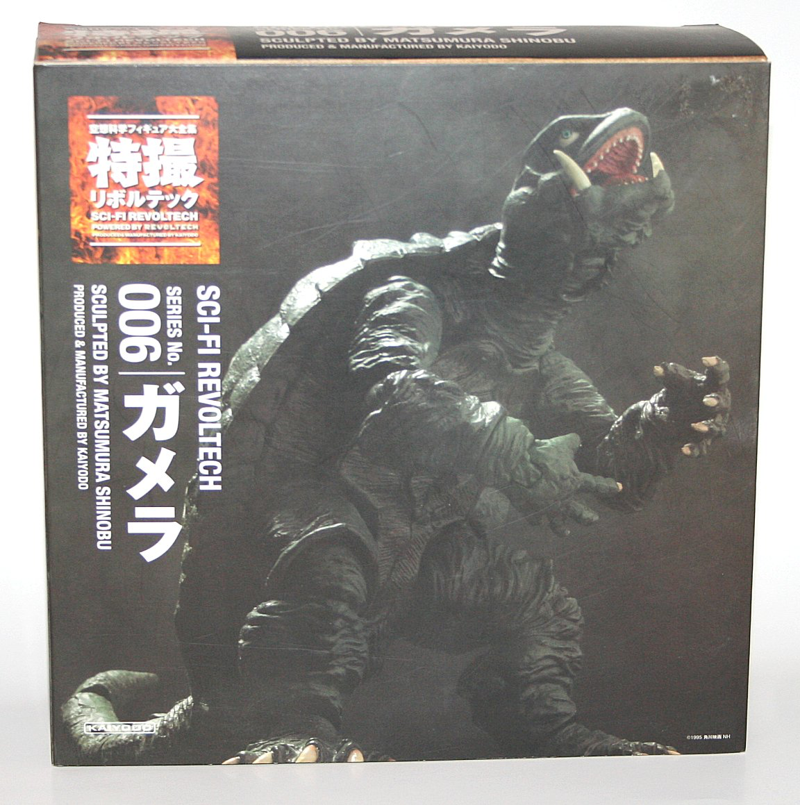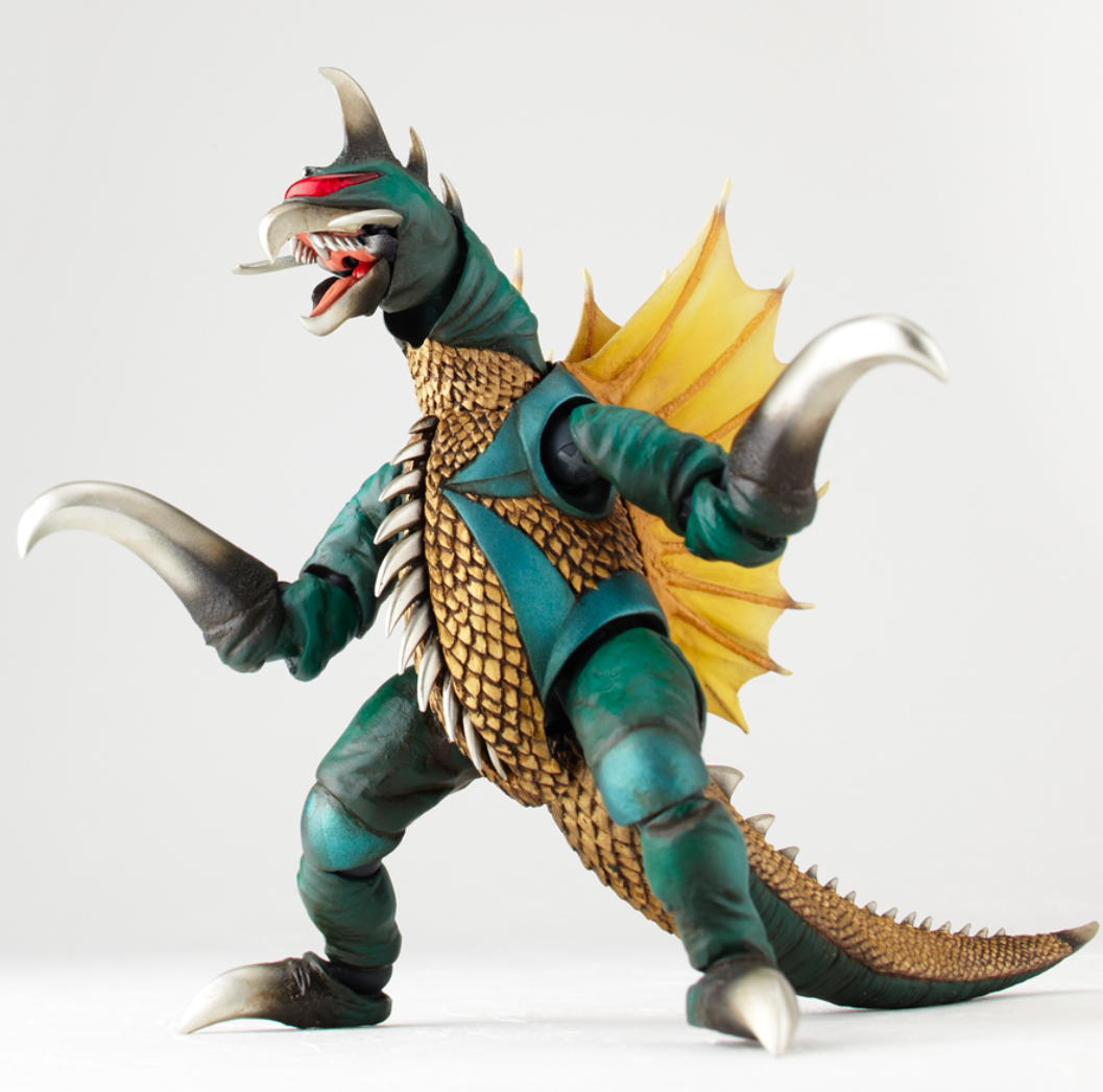 Revoltech (リボルテック Riborutekku) is a toy company that has released figures for Godzilla, Gamera and other kaiju franchises under the Revoltech Sci-Fi line, alternatively known as the Tokusatsu or Special Effects line. Each figure includes a nameplate and collectible coin.
