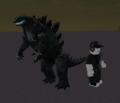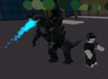 On April 17, 2019, Roblox released limited-edition promotional in-game items in a collaboration with Godzilla: King of the Monsters.[1] Three more Godzilla items were released that June 21, obtained by completing the Creator Challenge Quiz: Rodan's Head, Godzilla Spine Backpack, and Ghidorah's Wings.