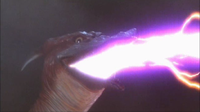 During the Cretaceous Period, while Gezora and Ebirah fought over a pair of dinosaurs, Rodan suddenly flew overhead and claimed the meal instead, knocking the dueling monsters over as he flew by. Almost immediately afterwards, Rodan was struck by Godzilla's atomic ray while he was in the midst of his own battle against Baragon and Varan, sending Rodan plummeting back to Earth - and right into Kumonga's nest. Kumonga quickly ensnared the fallen Rodan in his webbing, but before the spider could act any further, the ground split apart beneath them as a meteor shower fell to Earth and ravaged the landscape, sending both monsters crumbling into a crevasse.