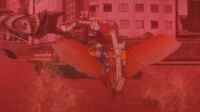 A few Rodan chased a group of soldiers around the ruins of the city. As they circled in for the kill, Jet Jaguar intervened, killing five using the Spear of Anguirus and causing the others to retreat.