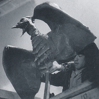 For the scenes of the Rodan pair in flight, wire-operated practical effects models were made to portray them by Eiji Tsuburaya and his team,[13] a technique which would continue to be used throughout the Showa era of Toho monster films, such as for Mothra; King Ghidorah; and Gigan, and beyond. Since these models would not need to walk through the miniature sets, a number of versions in different scales could be designed and produced to better emphasize a sense of realism[13] (at least 5 different scaled versions are known to have been created, including 1/30, 1/25, 1/20, 1/10,[13] and 1/2[2] scales).