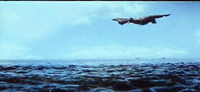 Rodan dives into the waters off Monsterland in Destroy All Monsters