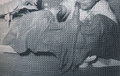 As Rodan's rampage continued, it attacked a young couple near Mt. Aso, though its victims did take a partial photograph of the beast before they were killed. When Shigeru emerged from his catatonic state and told his story to the authorities, Dr. Kashiwagi cross-referenced his story with the photograph and a piece of eggshell found near Mt. Aso, and determined that the UFO was actually a giant Pteranodon. Rodan emerged from the crater of Mt. Aso shortly afterward, and began flying to the city of Fukuoka. The JASDF engaged the beast in a dogfight, during which a F-86 Sabre crashed into the beast's wing, injuring it and causing it to lose its supersonic flight. Rodan touched down in Fukuoka, blowing away buildings and vehicles by flapping its wings. The JSDF deployed all its forces to attack Rodan, but they were blown away by the powerful winds. A second Rodan soon appeared over the city, and assisted its mate in fighting off the JSDF before escorting it back to their nest inside Mt. Aso.