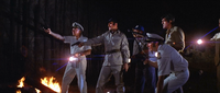 The ship reached the fog bank surrounding island, and Ross stopped the vessel at its edge. He remained on the Petrox Explorer and maintained radio contact with first mate Carnahan and others who sailed on a small boat and discovered the legendary Skull Island. At night, when everyone returned to the ship, Ross discussed plans for the coming days with Wilson, Prescott, and Bagley. The scouting party had discovered a human village and a possible source of oil. Prescott was sure that the island was also inhabited by a giant beast named Kong, and Ross assumed that he was right. The same night, the Skull Islanders kidnapped Dwan, and Ross and the others went to the island to rescue her.