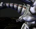SMG-IInd can rotate its forearms around to launch the spikes on their ends, guided on wires, in a move called the Wire Claw Attack (ワイヤークローアタック waiyākurōatakku). Once the spikes impale Godzilla, SMG-IInd can use its hover drive system to swing Godzilla around before tossing him.