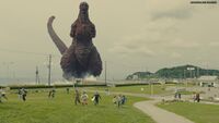 Godzilla returned to the ocean after reaching his third form, and the JSDF searched for the monster in Sagami Bay, but were unable to locate him. It was noted that if Godzilla had moved into the Sagami Trough, he would be impossible to detect. Several days later, Godzilla surfaced from Sagami Bay in his fourth form and made landfall at Kamakura.