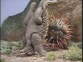 Anguirus possesses a spiky carapace on his back which is effective in harming other monsters such as when he accidently hurt Junior with it. The carapace was also capable of reflecting Gororin's spines and he used his carapace to hit Gororin though this had no effect. Anguirus's carapace was also the only thing which was capable of stopping Gororin as the cactus monster merely bounced harmlessly off it and he pinned Gororin to the side of a mountain with it so that it couldn't move.