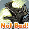 A sticker of Anguirus from Godzilla with the text "Not Bad!" is featured.