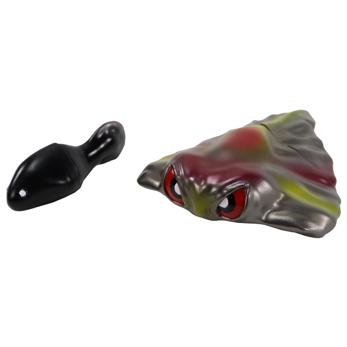 When hit on the top of the head, the figure’s eyes light up.