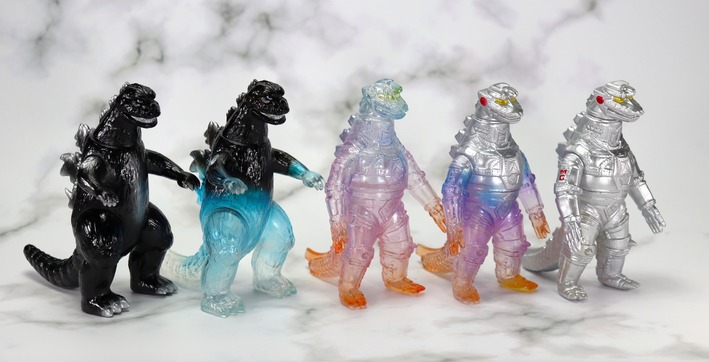 Prototypes of Godzilla 2004, Godzilla 2016, Mechagodzilla 1993, Mothra 1992, Hedorah (Flying Stage) and Hedorah (First Stage)