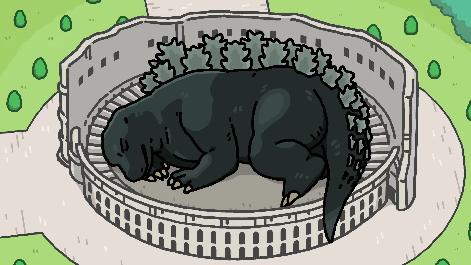 On the final stop of Chibi Godzilla's tour of Monster Island, he brings Chibi Mechagodzilla to the Colosseum. When Chibi Mechagodzilla asks what's inside, Chibi Godzilla reveals Godzilla, his father, slumbering in the Flavian Amphitheatre.