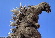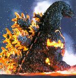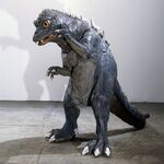 To depict Godzilla's Burning form, the MogeGoji suit was refitted with dorsal plates fashioned from semi-transparent vinyl, which housed red, orange and yellow light bulbs. The largest plate was placed at shoulder height again, as with the BioGoji suit.