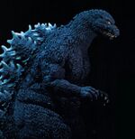 His plates are unlike those of any other Godzilla in that they begin at the top of his head, and are more triangular in shape compared to Godzilla's traditional maple leaf-shaped plates. They are also blue or green in color rather than bone-white.