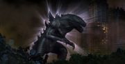 The dorsal plates became smooth and bone-white again. When Godzilla charges and expels his atomic breath, the dorsal plates on the suit shift slightly via a mechanism on its back.