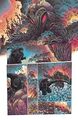 While most comic incarnations of the character are depicted with onomatopoeia to express roaring or other natural sounds, this comic gives Godzilla a blurred speech bubble meant to represent his roar. The speech bubble was created by tracing the oscilloscope image of his cinematic roar and then adding vague lettering to it.[1]