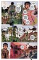 Some of Godzilla's proportions alter from panel to panel. His dorsal plates are sometimes straighter or more slanted backwards, his snout is occasionally elongated, and his body parts' musculature are frequently emphasized via vein-like outlining. Most noticeably, Godzilla's physique is relatively bulky and hunched over in some instances such as the panels in issue 2 depicting him marching through Vietnam.