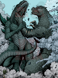 Godzilla (ゴジラ Gojira) is a giant monster who appeared in IDW Publishing's 2011-2015 ongoing comic continuity known as the "IDW Universe" consisting of Godzilla: Kingdom of Monsters, Godzilla, and Godzilla: Rulers of Earth. The third incarnation of Godzilla to star in an ongoing American comic book series after the Marvel and Dark Horse Godzillas, this Godzilla incarnation has appeared in more Godzilla comic issues than any other comic incarnation, appearing in all 50 issues of the series.