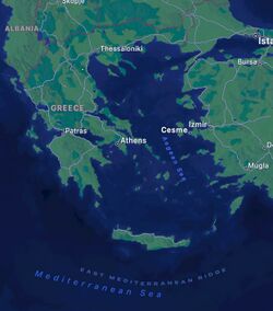 Greece is a country in Southern and Eastern Europe. Its modern bounds are the southern portion of the Balkan Peninsula south of Albania, North Macedonia, and Bulgaria; it is bordered by Turkey to the east, and includes several islands (such as Crete) in the Mediterranean Sea. While it has appeared infrequently in kaiju media, its ancient past has been featured and referenced in them substantially.