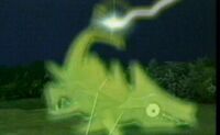 King Rampus can fire a greenish-yellow laser from his tail fin, a direct from which proved strong enough to blow up Dengu. His entire body glows green as he charges it.