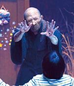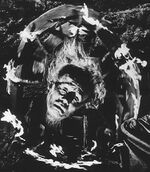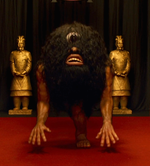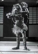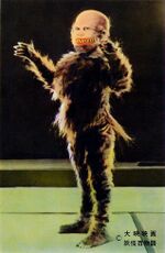 - ↑ 1.0 1.1 According to Revive! Great Yokai Movies Assembly (p. 69), Daimon becomes 10 times his regular size when growing gigantic. His normal height and weight of 1.87 meters and 70 kilograms multiplied by 10 results in 18.7 meters and 700 kilograms, respectively.