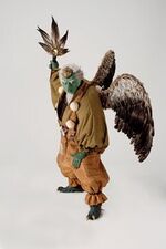 Raijin are gods of thunder and lightning. Two varieties appeared to drive back Daimon: a winged individual who accompanied the Yokai Air Force, and a terrestrial one which was a part of the Army.[15] After Daimon was defeated, the former was among the yokai who met with Aogappa and disappeared with Aburasumashi. |