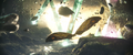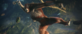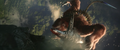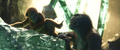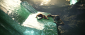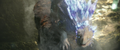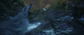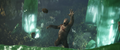Some time later, Jia discovers Iwi ruins, centuries older than those on Skull Island. The team ascends a staircase, where they find a stone wall carving of Mothra. Jia realizes the ruins are her temple. A glowing dragonfly leads her to a stone button which she presses to trigger a still-functional irrigation system. They follow the flow of water to a strange, rippling barrier. After Beasley tests it, Jia pulls apart a section to create an opening, and the team steps through.