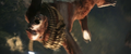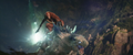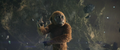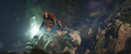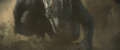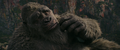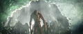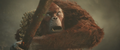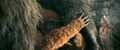 While Suko lead Kong to the Living Caves, the Iwi queen lead Andrews' team to a room covered in Iwi historical writings, which the linguist translates. It describes harmony between the Hollow Earth and the surface, with the Titans protecting nature and the Great Apes defending humanity. One such ape, the malevolent Skar King, sought to conquer the surface and led his tribe into battle against Godzilla. The King of the Monsters barely survived the war, but ultimately sealed the apes away in a fiery Hollow Earth realm, where their leader still plots his revenge.